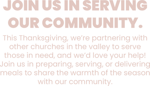 This Thanksgiving, our local churches—Victory Life Church, Fellowship Church, Life Community Church, The Downtown Vineyard Church, Living Water Vineyard and Canyon View Vineyard Church—are coming together to serve our community with the love and compassion of Jesus. As we celebrate His blessings, we want to ensure that no one goes without a warm meal or the hope He brings.